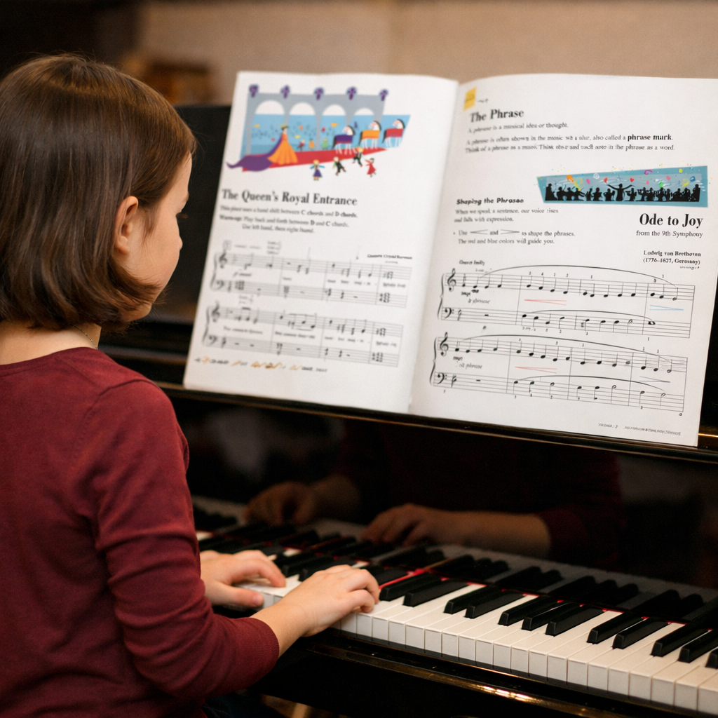 Students learn how to read and interpret written music while developing strong technique and musical expression at the piano. Through the use of method books, lessons focus on note reading, rhythm, phrasing, dynamics, and stylistic awareness across different musical periods. Students gradually build a repertoire of classical works while gaining the skills needed to approach new sheet music with confidence.